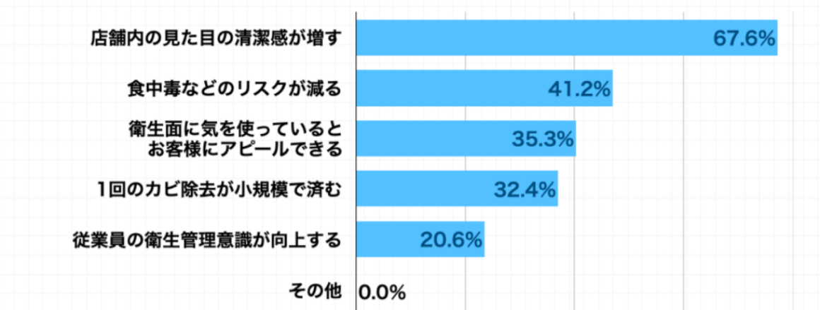 「店舗内の見た目の清潔感かが増す」が67.6%、「食中毒などのリスクが減る」が41.2%、