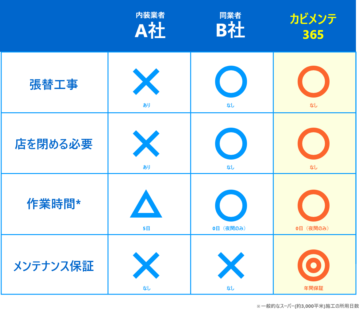 臭いがなくなります。*24時間店舗の場合は要相談。